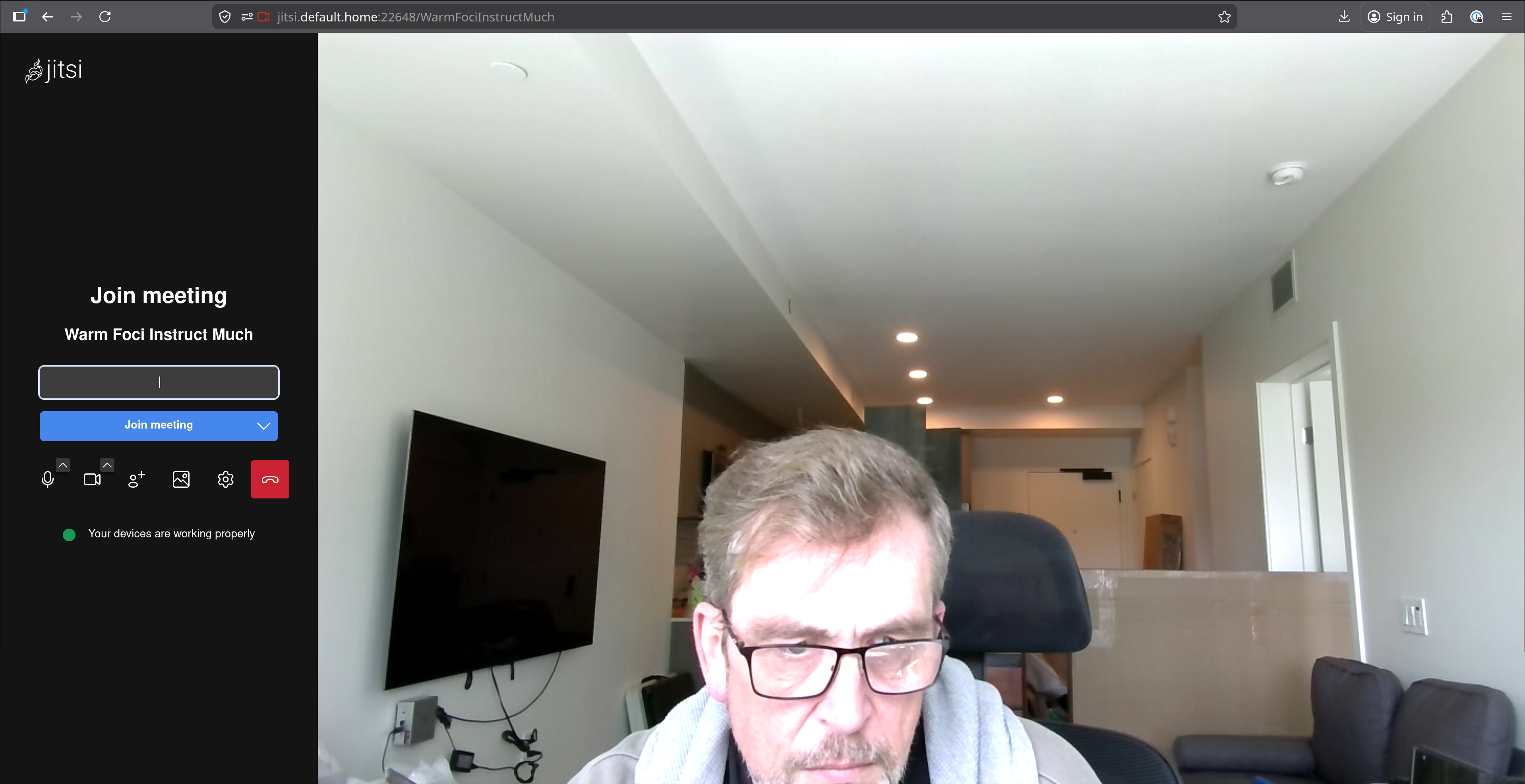 Self-hosted video conferencing at jitsi.default.home, accessible from phones, laptops, and tablets on your LAN.